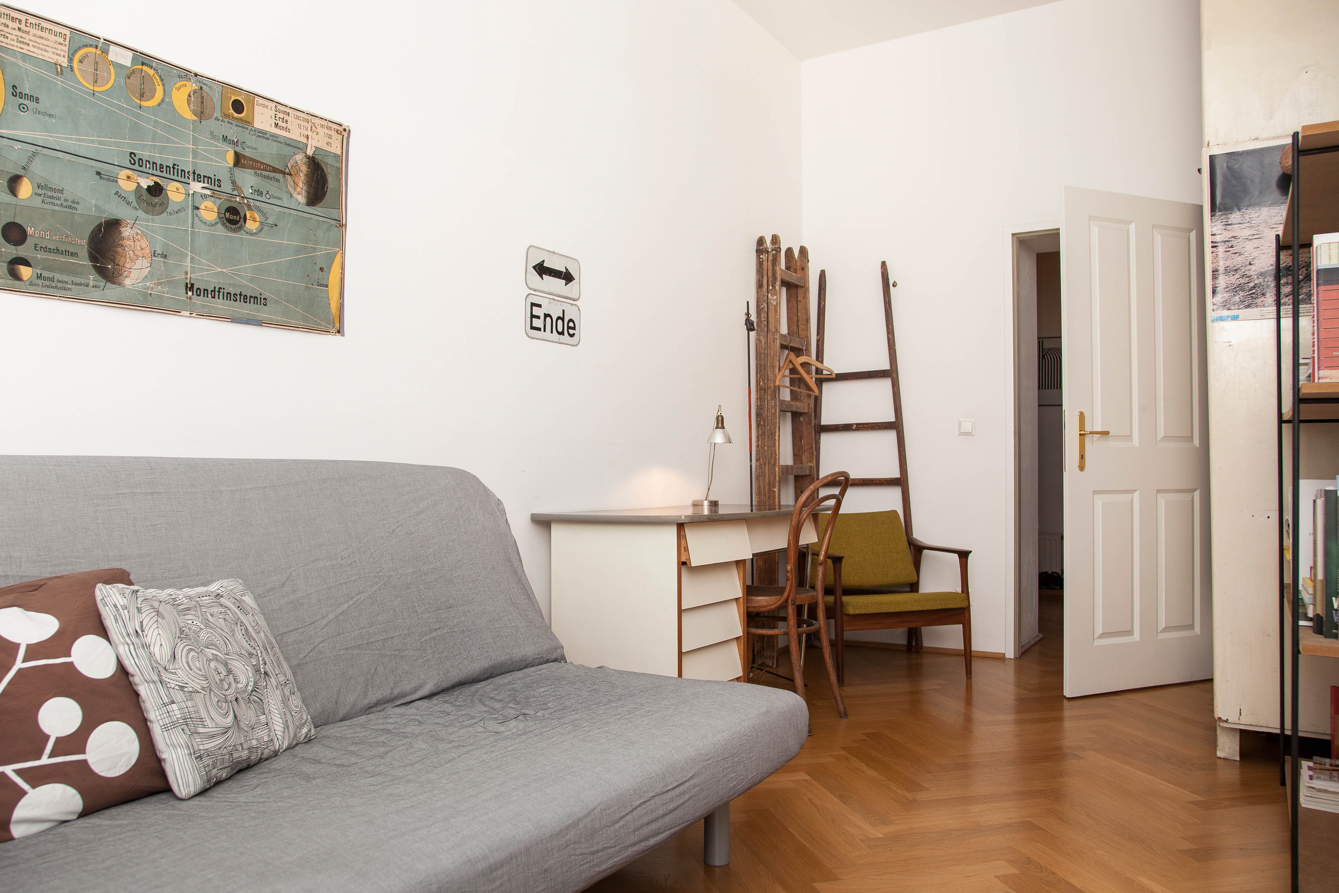 An old building apartment was transformed with intense colors, clear structure, and a harmonious mix of old and new furniture into an open, lively home for a young family. With the birth of a child, the desire for more space, light, and connection in daily life arose.